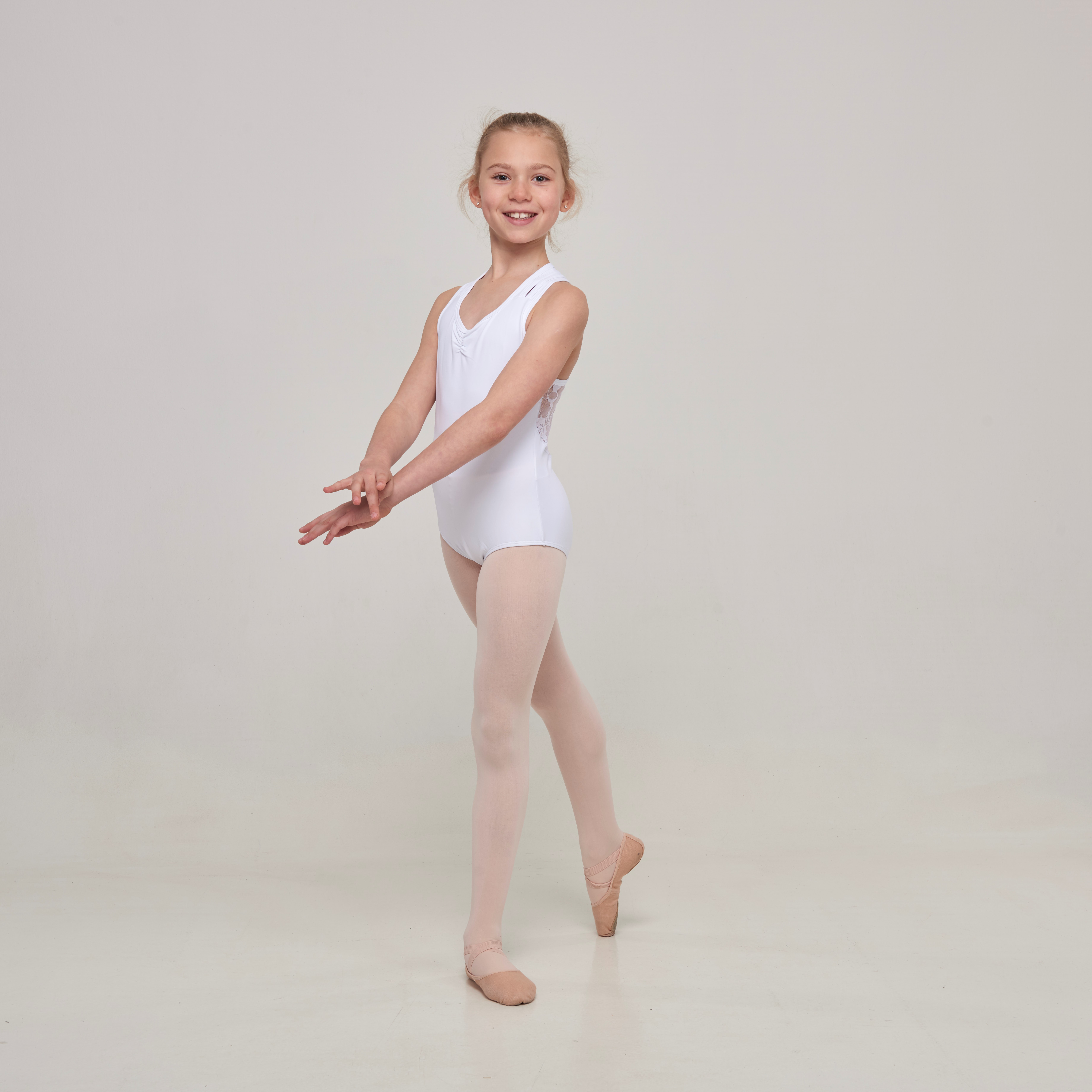 Drakt med blondeparti bak. Drakten har to stropper på hver side, og er rynket foran. Litt små i størrelsen. Skjørtet på et av bildene følger ikke med. Størrelsene i parentes står i drakten