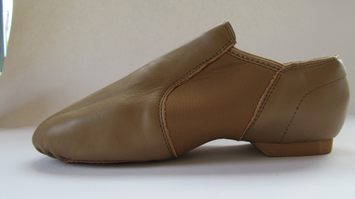 Slip on jazzsko i skinn med delt såle og og sidestykke i strikk/neoprene. Sålen under tåpartiet er i semsket skinn.