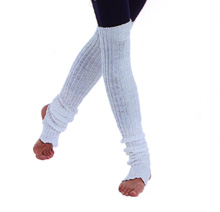 Ribbestrikkete leggvarmere med hull til hæl. Lengde ca 90 cm. Acryl (Noe acrylgarn kan nuppe)