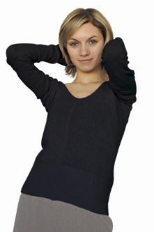 Strikkegenser. Meget behagelig kvalitet med 63% silke og 27% bomull.