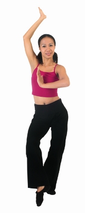 Yoga/Jazz bukse i bomull/lycra. Buksen har rette, vide ben, og høyt liv som (slik som på bildet) kan brettes ned.