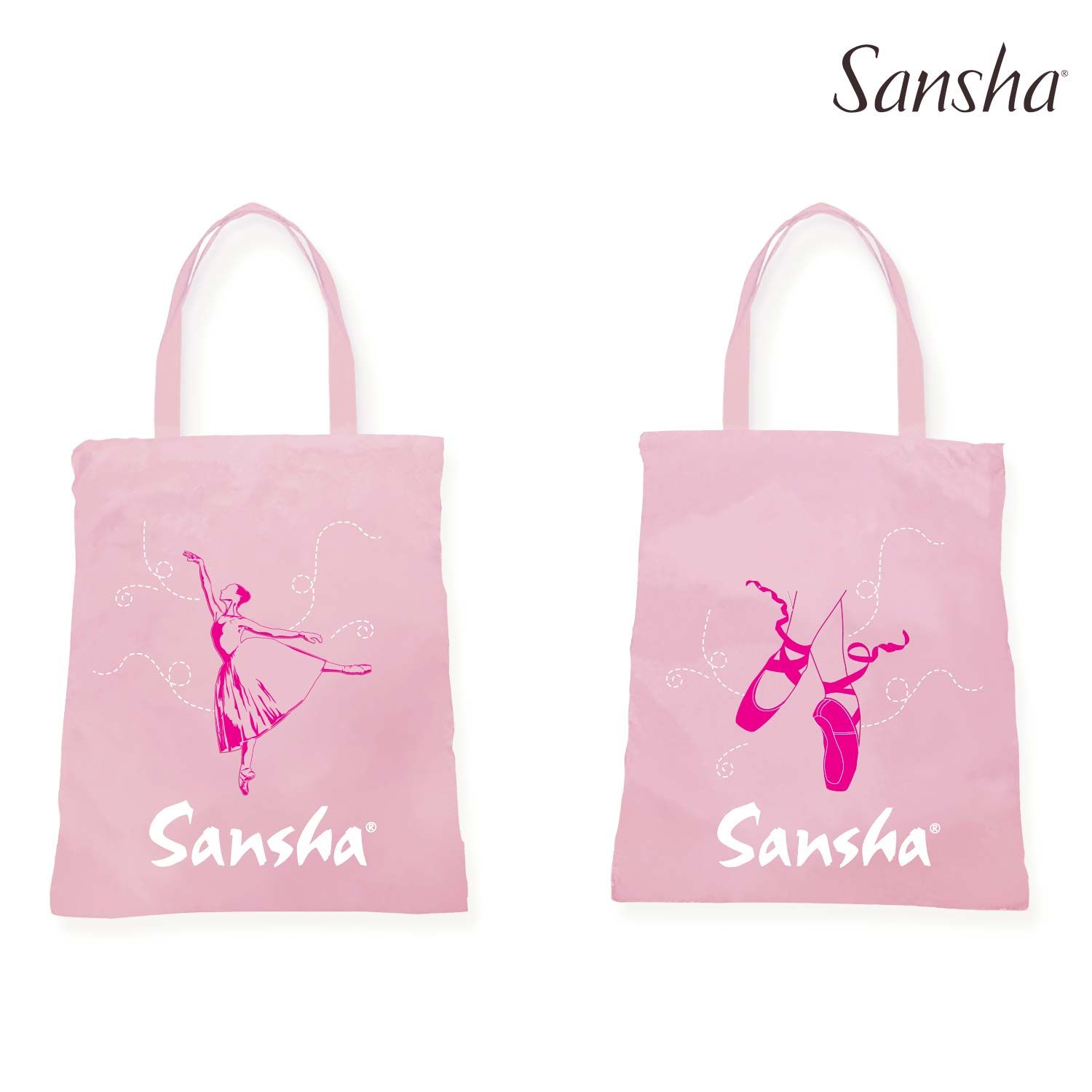 Liten tote bag/nett til danseutstyr. De har noe ulike mønstre.