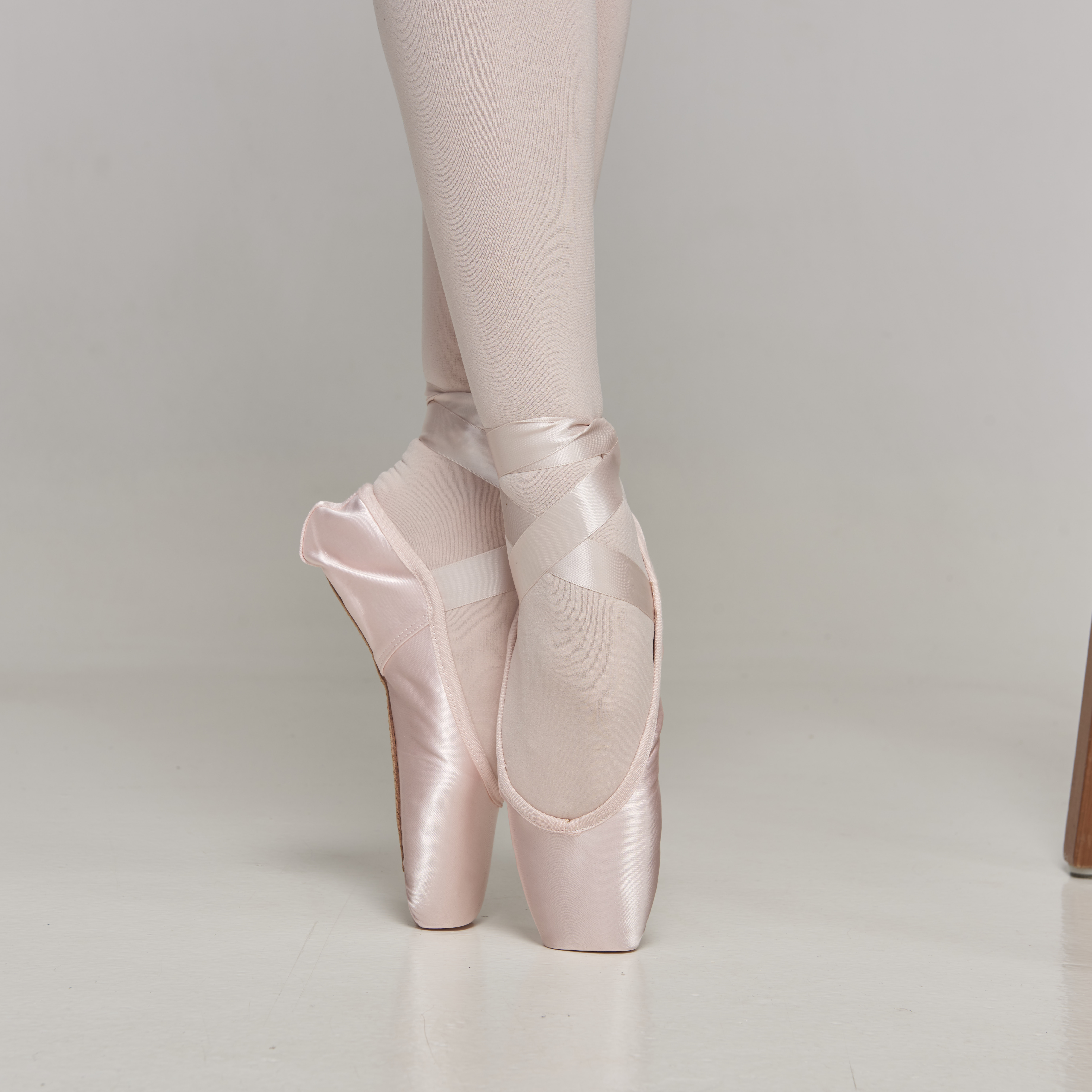 L'assistance har myk såle som "hjelper" deg opp på tå. Den kommer i tre bredder: B for smal, C for smal til normal bredde og D for litt bredere fot.